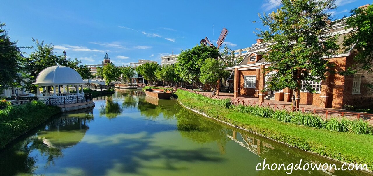 전체적으로 신경써서 만들었다는 생각이 들고, 특히 가로수 조경 관리가 잘 되어 있어서 한낮에도 그늘에서 산책할 수 있다. 지금은 코로나사태로 상가들이 완전히 입주하지 않았지만 몇몇 상점들은 영업을 하고 있고, 그 중 스테이크하우스, 차타임 등이 있어서 부족하지만 먹고 마시는 것은 해결할 수 있다.