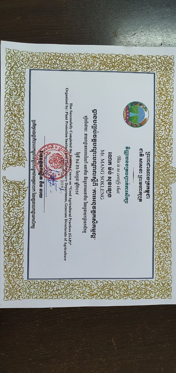 캄보디아는 농업부 Ministry of Agriculture, Forestry and Fisheries (MAFF)의 농업총국General Directorate of Agriculture (GDA)이 GAP를 총괄하는 기관으로 인력과 농장에 대한 교육과 시료검사를 도맡아서 진행하고 있다. http://www.fao.org/3/cb1303en/CB1303EN.pdf
