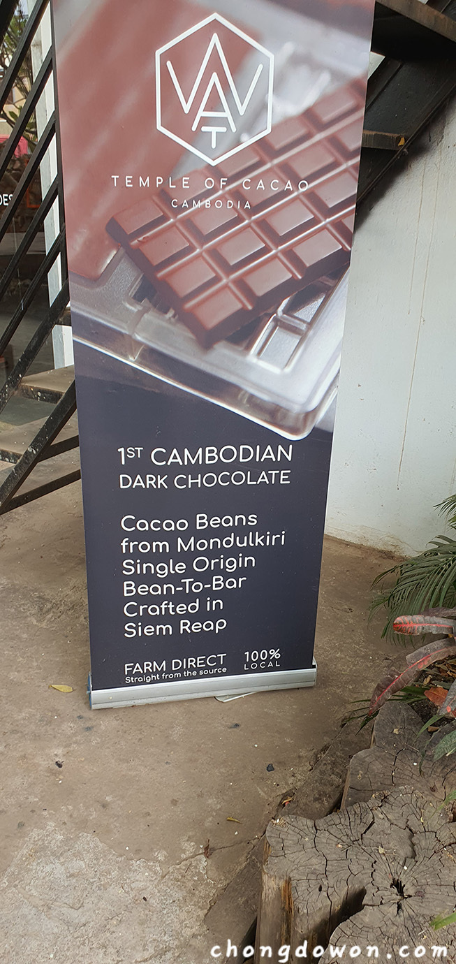 캄보디아 몬돌끼리에는 작은 규모지만 카카오가 생산되고 있다. https://kamkavfarm.com/ 이제 시엠립에는 이 카카오를 받아서 초콜렛을 만드는 작은 공장이 생겼다. https://www.cacaotemple.com/
