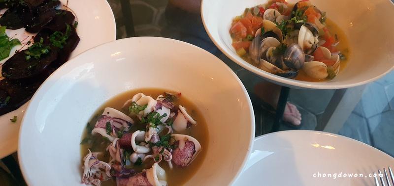 사교모임이라는 뜻의 터튤리아 식당은 포르투갈 식당이다. 부부가 운영하는 식당으로 직접 구운 약간 독특한 빵을 준다. 음식이 엄청 맛있지는 않은데 정갈하고 가볍게 와인과 마시기 좋다. 포르투갈 식당이어서 몇가지 포르투갈 와인을 먹을 수 있다. 사진에 보이는 오징어, 조개 요리가 각각 5불이고 꼬치는 18불로 가격은 저렴하다.
