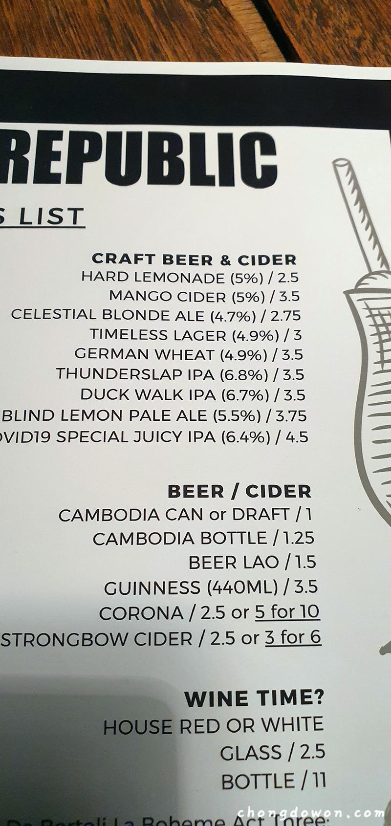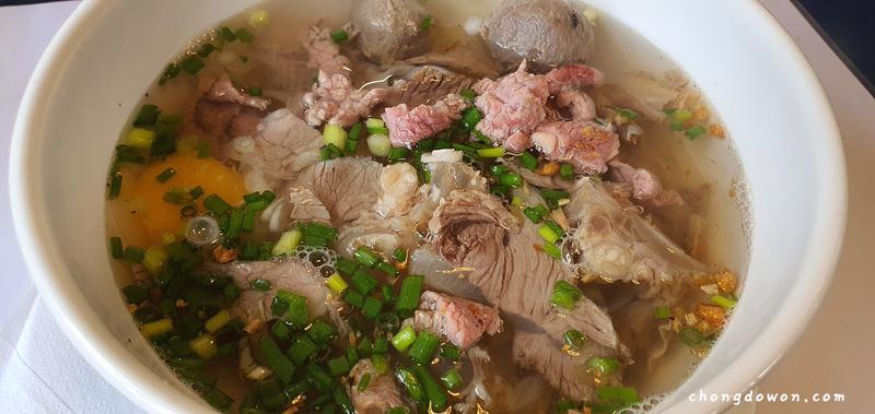 프놈펜에 있는 포 포츈과 로고가 같지만 국물맛과 면 스타일이 달라서 같은 브랜치인지는 정확하지 않다. 국물이 짜지도 달지도 않아서 좋은데 넓고 두꺼운 면을 써서 호불호가 갈릴 수 있다. 두꺼운 면인데도 적게 삶아줘서 설익은 면을 먹었다. 일반 국수가 2.5불로 싼 편이다. 대신 냉수 등은 따로 돈 받는다. 사진은 스페셜로 4불