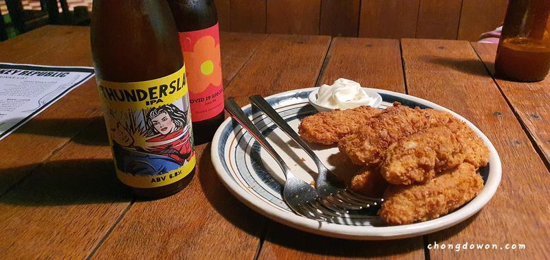 맥주 한잔 하려고 찾아간 곳인데 수제맥주가 있다. 맥주 맛이 특색있고 할랴피뇨+치즈 튀김이 안주로 아주 잘 어울린다. 실내에서 흡연이 가능해서 조금 불편하다.