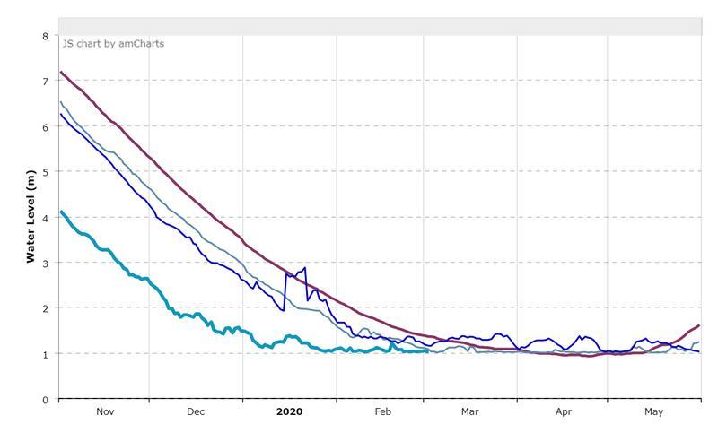 아래 이미지들은 메콩강위원회에서 제공하는 연도별 강수위변화다. Chian saen은 upper mekong, Vientien은 middle mekong Prek Kdam 은 low mekong에 해당하는 지역이다. 상류지역의 2019년과 2020년의 강수위는 전체 평균에 가깝지만, 하류지역은 수위가 많이 낮아지고 있다.