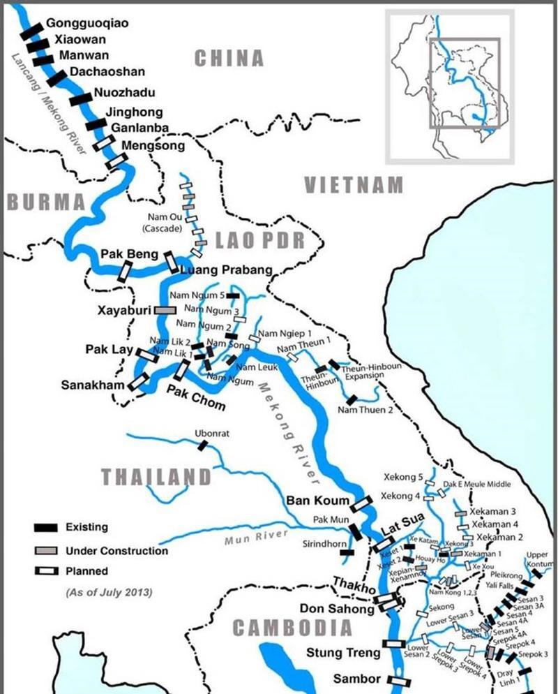 메콩강협의회 Mekong River Commission에는 메콩강 유역의 상태를 모니터링하고 있는데, 2019년 12월의 기사를 보면 기후변화보다 메콩강의 댐 설치가 강의 수위변화에 더 큰 영향을 미치고 있다고 한다.