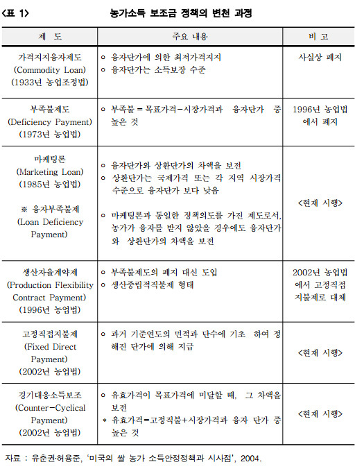 -- 미국의 농업보조금 정책, 허용준