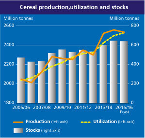 FAO의 자료를 보면 세계의 곡물 Cereal 생산은 증가하고 있다. http://www.fao.org/worldfoodsituation/csdb/en/