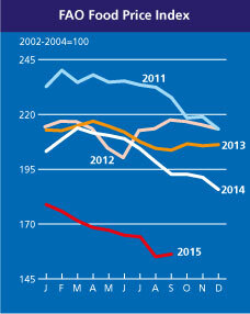 식량가격은 감소하고 있다. http://www.fao.org/worldfoodsituation/foodpricesindex/en/