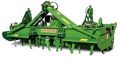 우리나라에서 주로 쓰는 로터리형 해로우(로터리 써레이다.) 동력이 트랙터에서 전달되어 흙을 잘게 부숴진다.