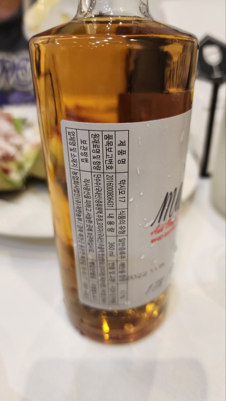 오미자막걸리도 많은데 굳이 단수수를 원료를 사용했는지는 조금 의문이 든다. 술 자체는 부드러우면서 오미자를 섞었기 때문에 달달한 향과 맛이 난다. 40을 마셔봐야 본연의 맛을 느낄 수 있겠지만, 17만으로도 충분히 예상할 수 있는 훌륭한 맛일거라고 생각든다.