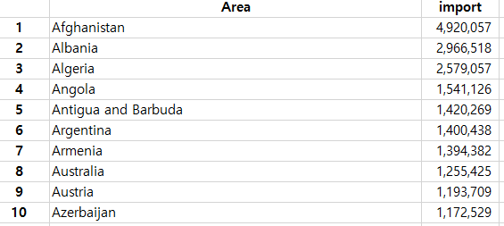 * 중국은 편의상 China로 구분된 자료만 사용했고 China mainland, China Taiwan Province of, China Hong Kong SAR 등의 구분이 있다.