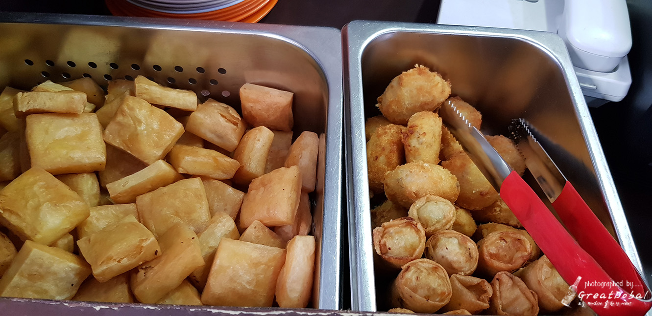 우선 음식은 채식 점심 세트와 Fried egg with seafood 그리고 Shan noodle 를 시켰다. 음료 두 잔을 포함해서 총 24불(카드로 결제함) 앞에서 언급한 식당들과 비교되는 점은 면과 국물이다. 샨누들의 면은 아주 잘 익어서 탄력이 살아있고, 육수 역시 기름기가 살짝 있지만 담백해서 비리거나 느끼하지 않다. Fried egg with seafood는 누룽지탕과 살짝 비슷한 느낌인데 머랭을 만들고 달걀 노른자를 입혀서 살짝 튀긴 듯하다. 그것을 4등분으로 자른 다음 돼지고기, 해산물 등을 볶고 익힌 것을 부어 준다. 채식 점심 세트는 콩을 기본으로 발효하여 만든 소스로 된 국물, 감자튀김, 밥 등이 함께 나오는데 딱히 깊은 맛이 있지는 않지만 건강식을 찾는 사람은 좋아할 것 같다.