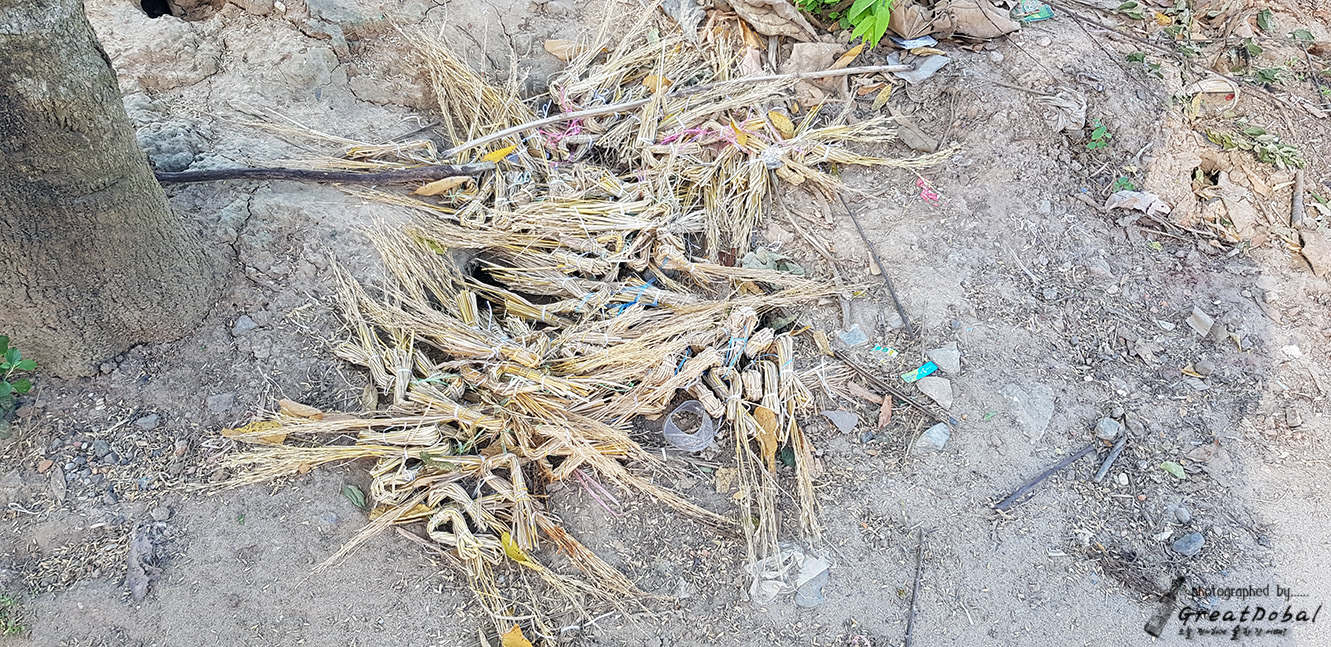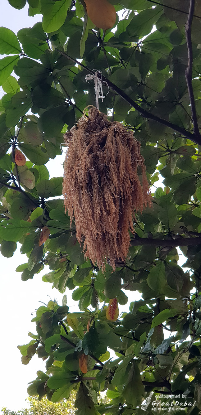 4. 새 모이 : 볏짚단을 걸어서 새 모이로 준다. 다 먹은 볏짚은 땅에 버림.