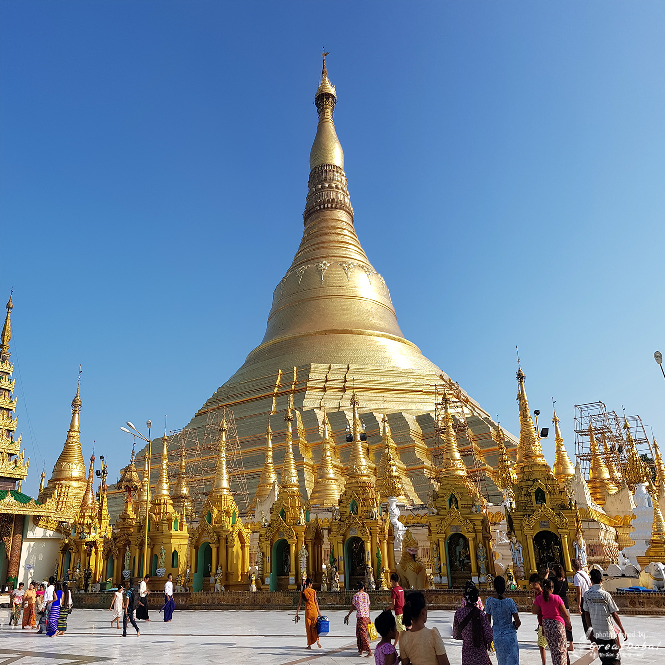 1-1. 쉐다곤 파고다 : Shwedagon Pagoda는 98m의 거대한 파고다이다. 전설에 의하면 이 파고다는 2500년 전에 세워졌는데, 누구나 볼 수 있도록 언덕을 쌓아서 지었다. 언덕을 쌓기 위해서 파낸 흙으로 깐도지저수지가 만들어졌다고 한다. 대탑 주변에 여러 작은 탑과 불상들이 있다. 매년 불자들이 시주한 금을 추가로 붙여서 계속 커지고 있다고 한다.