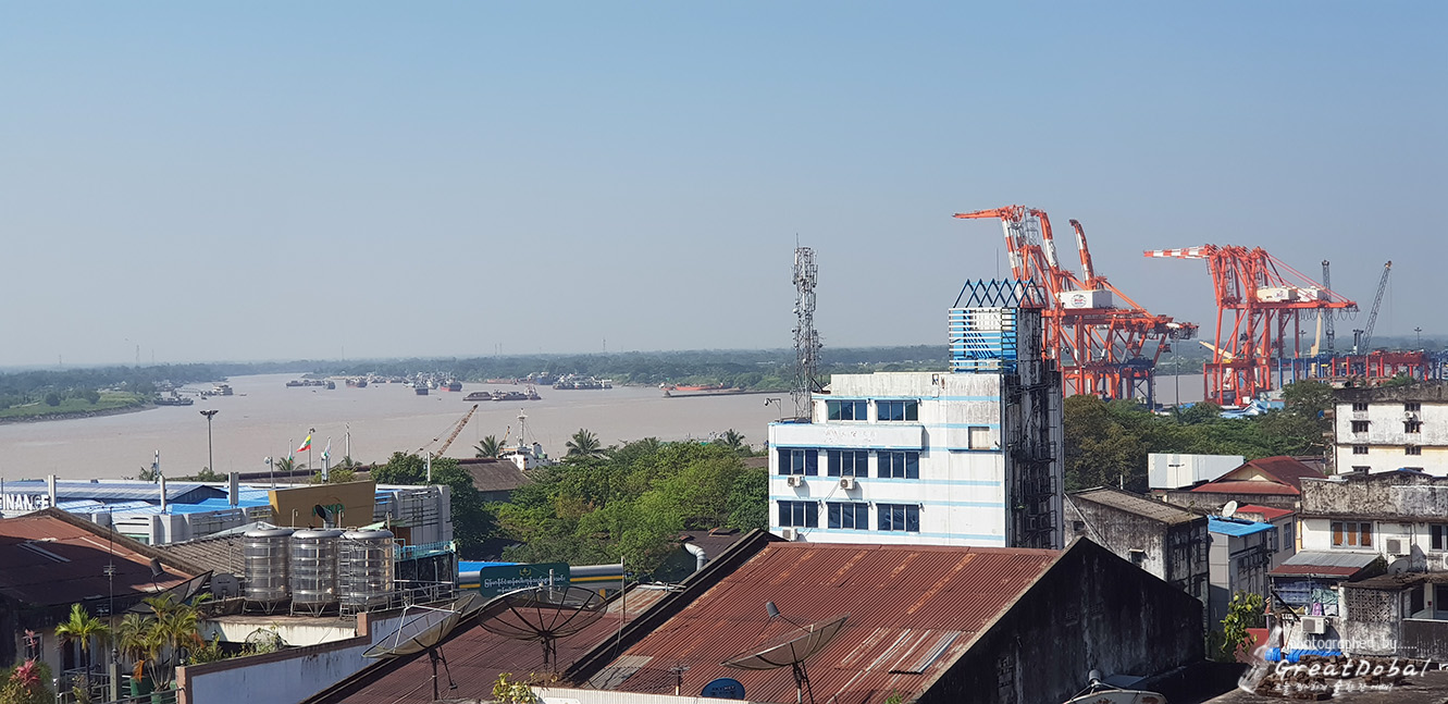 객실에서도 강이 보이지만 잘 보이지 않고, 꼭대기 층의 식당에서는 강과 쉐다곤 호텔까지 잘 보인다.