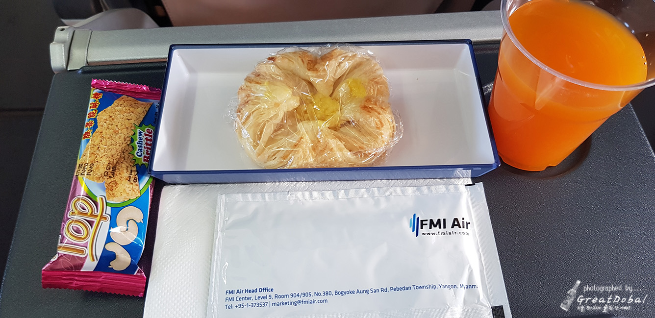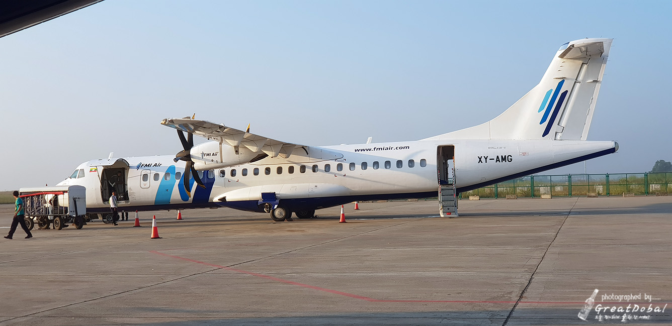 양곤에서 바간까지 갈 때는 국내선 중 FMI 항공을 이용했다. 편도 요금이 1인당 80불이며, 양곤을 출발하여 네피도에 잠시 들러서 손님이 한번 내리고 탄 다음 다시 출발한다. 총 소요시간은 2시간 반이다. FMI외에도 다양한 항공사와 시간대가 있지만 확인했을 당시 가격은 FMI 가 제일 쌌다. 기내식으로 간단하게 빵과 음료를 주고 간식으로 캐슈넛과자와 초콜렛을 준다.