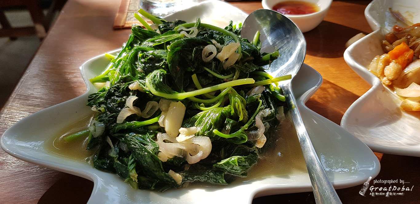 뉴바간 2번도로에 있는 Mimosa 식당. 이 식당은 새로 생긴 곳으로 그나마 먹을만하다. 하지만 아직 구글지도에도 나와 있지 않다. 현지식을 이것저것 시켰는데, 그 중에서 새우를 감자에 말아서 튀긴 음식이 인상적이었고 안주로 좋았다.