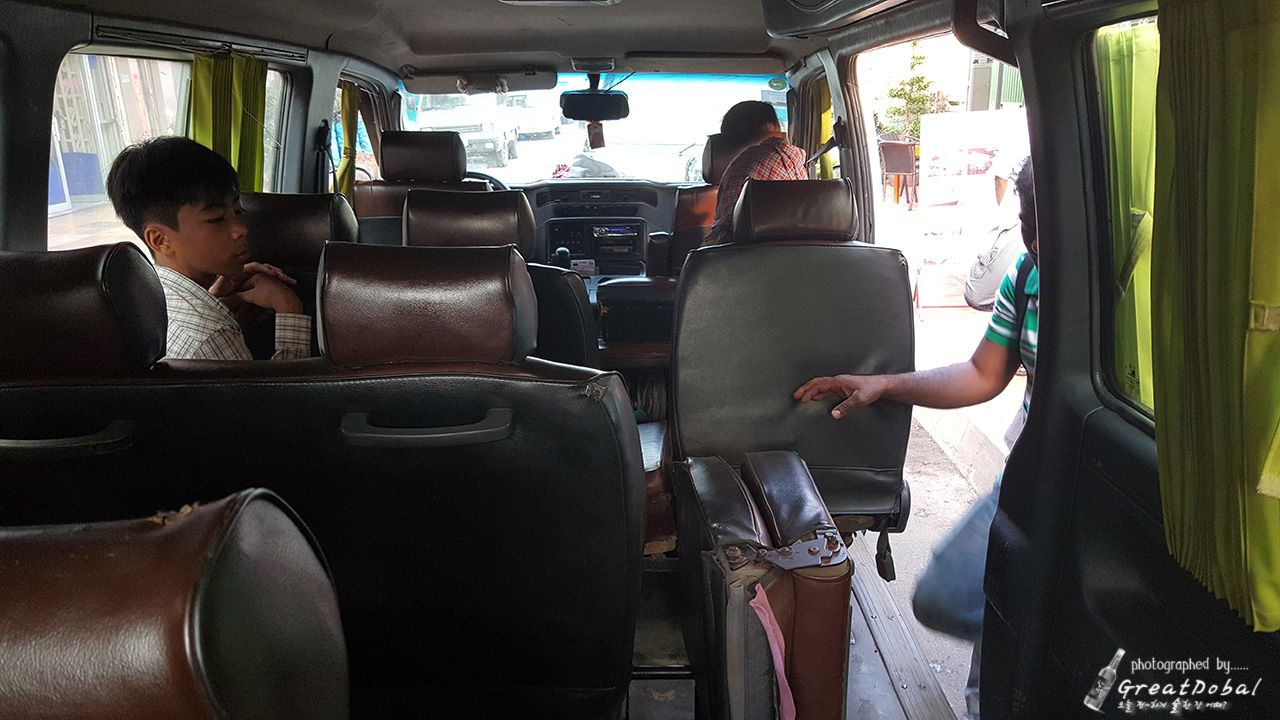 1열에 3인 좌석이지만 최대 4명까지 같이 타야한다. 그날그날 손님에 따라서 운이 바뀌는 것이다. 대부분의 캄보디아 시스템이 그렇듯이 숙소에서 부터 늦게 출발한 차는 이리저리 다른 손님들을 태우느라 결국은 7시 40분이 되어야 크라체를 출발했다.