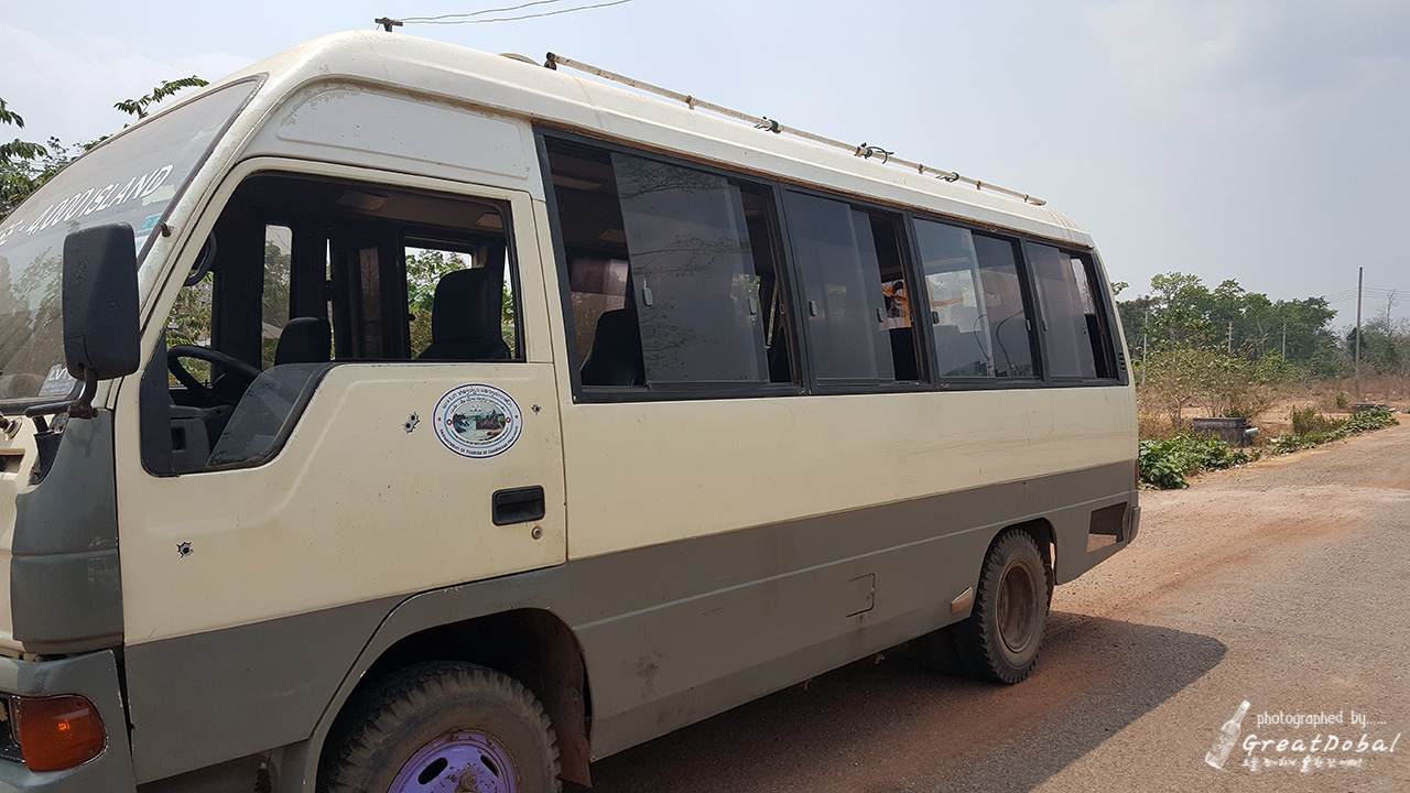 1열에 3인 좌석이지만 최대 4명까지 같이 타야한다. 그날그날 손님에 따라서 운이 바뀌는 것이다. 대부분의 캄보디아 시스템이 그렇듯이 숙소에서 부터 늦게 출발한 차는 이리저리 다른 손님들을 태우느라 결국은 7시 40분이 되어야 크라체를 출발했다.