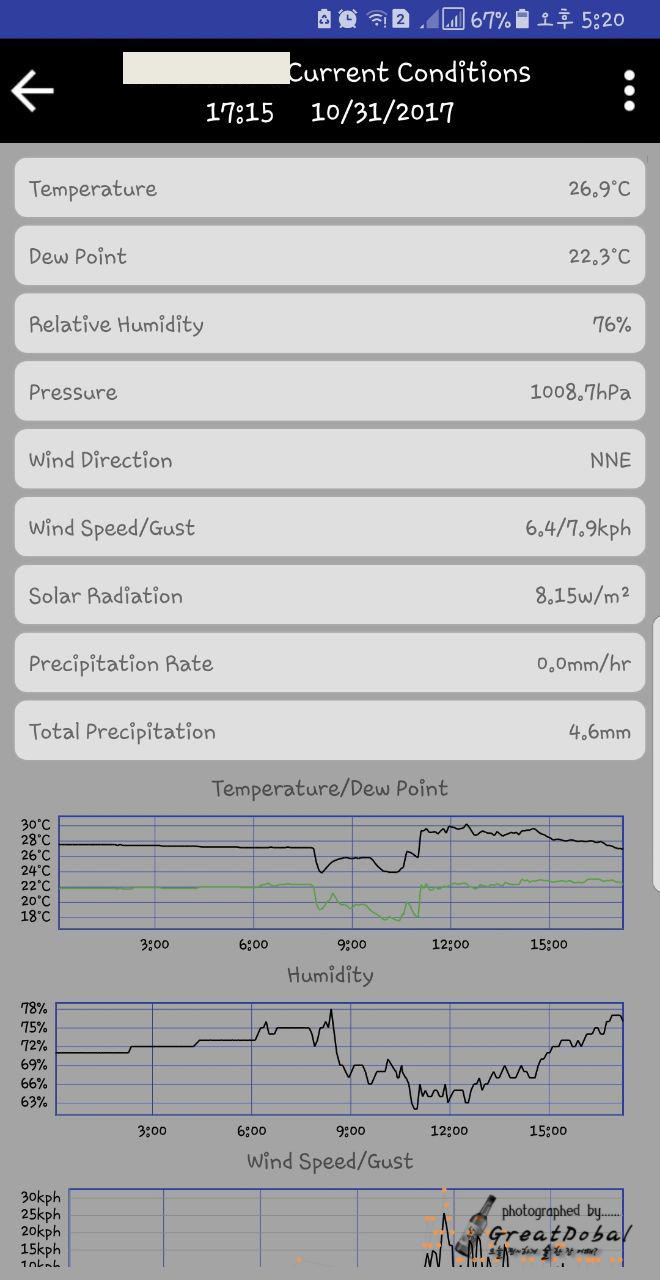 제품은 알리익스프레스에서 Misol 로 검색하면 나오는 것으로 온습도, 풍향속, 광량, 강우 등 기본적인 것들을 체크할 수 있다. 그리고 기록된 정보는 https://www.wunderground.com/ 와 같은 기상 클라우드에 업로드하여 데이터를 저장, 공유할 수 있다.