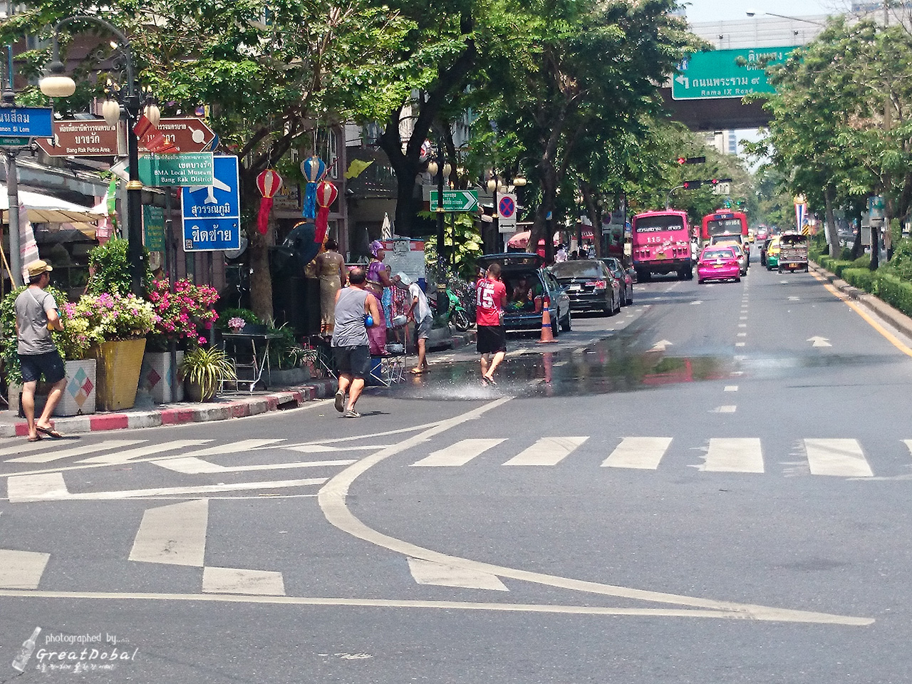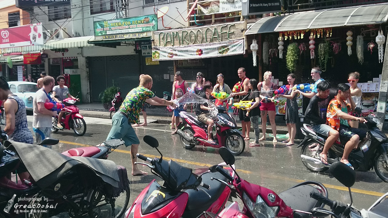 태국의 쏭크란은 지나가는 아무 행인에게 물을 뿌려 더위를 식히고, 복도 빌어주는 행사이다.
