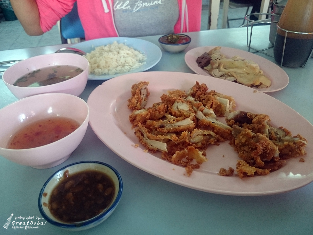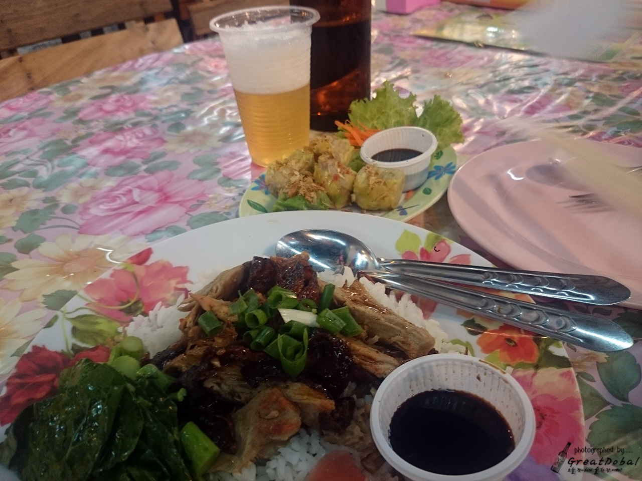 삶거나 튀긴 닭, 돼지고기 덥밥