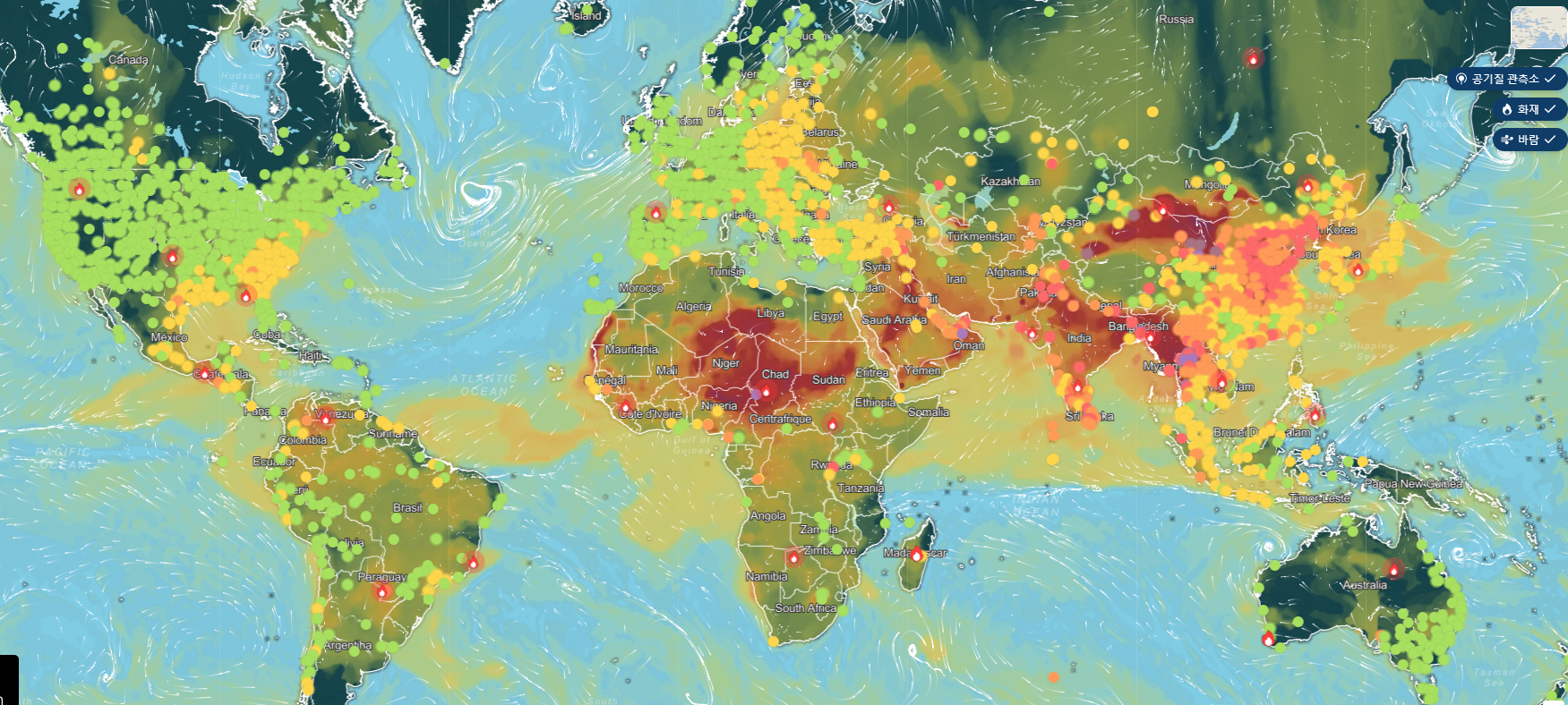 아래 사진은 공기질 모니터링 페이지에서 가져온 이미지다. https://www.iqair.com/ko/air-quality-map 2024년 3월 15일 10:16 검색(UTC+7)