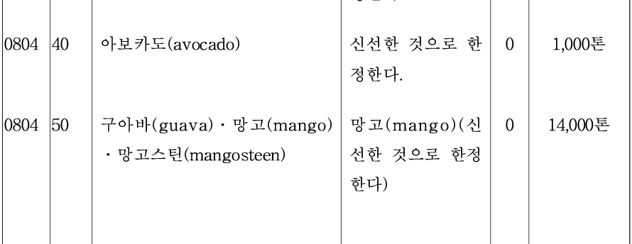 해외 플랜테이션 농장에서 일을 하고 있지만 이렇게 급작스럽게 관세를 인하하는 것은 문제가 있다. 신선망고 HS Code 0804.50-2000은 기본관세가 30%이고, 한-아세안FTA 24%, 한-베트남 3%의 관세를 적용받고 있었다. 이에 이번 할당관세를 통해 이 관세가 0%가 된 것이다.