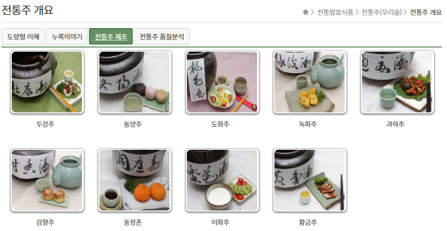 해당 사이트에서는 누룩 뿐만 아니라 전통주 29종의 제조법도 정리해 두었다.