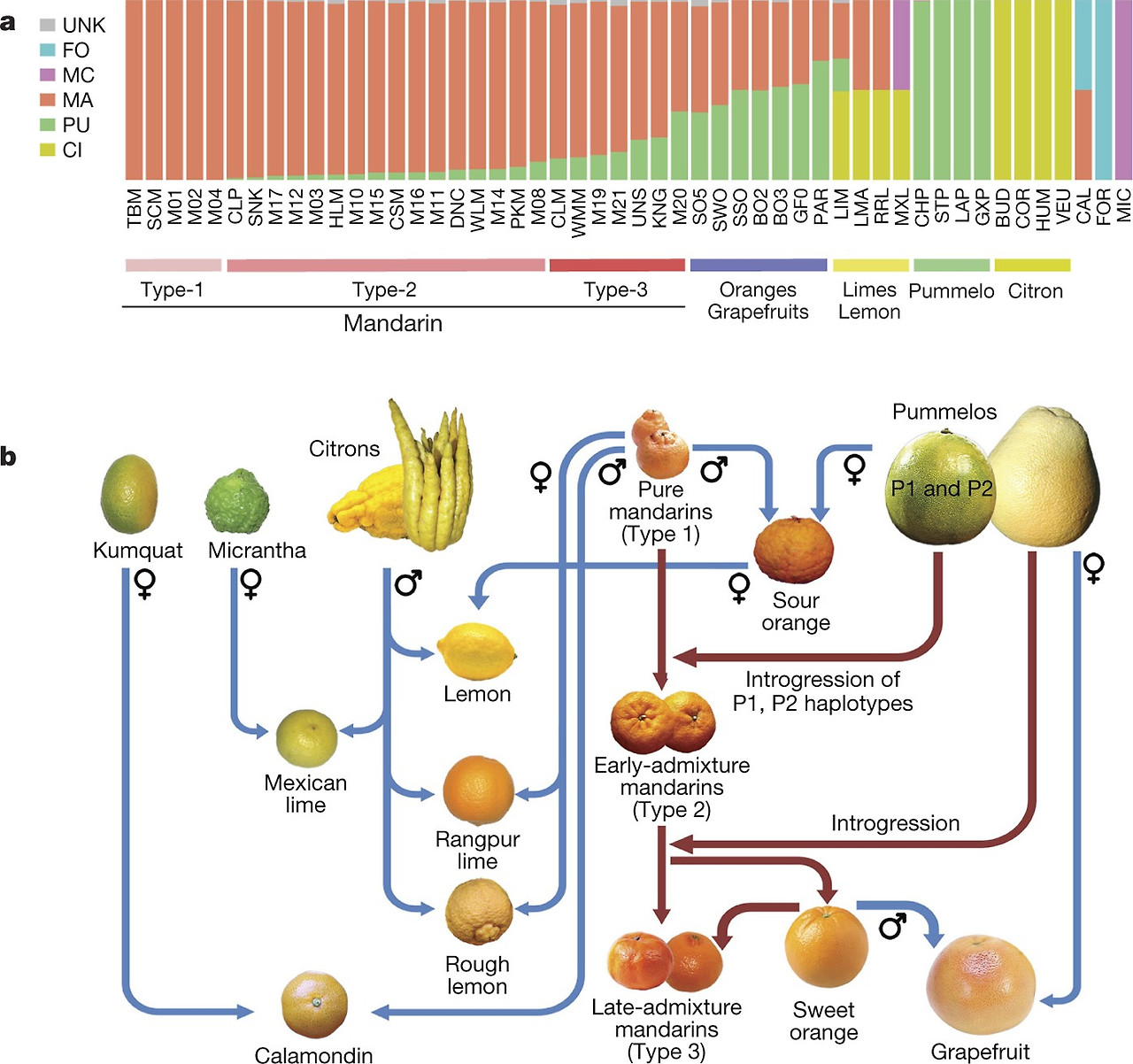 Citrus에는 귤, 오렌지, 포멜로, 라임, 레몬 등의 과일이 속하고 현재 우리나라에서 재배되는 감귤은 온수밀감으로 귤과 포멜로의 유전자가 섞인 것이다. 웃기게도 영어권에서는 감귤을 만다린 오렌지라고 부른다. 감귤과 오렌지의 큰 차이점은 껍질의 두께와 잘 벗겨지는 정도이다. 크기로 보면 라임, 레몬, 귤, 오렌지, 포멜로 순서로 크다.
