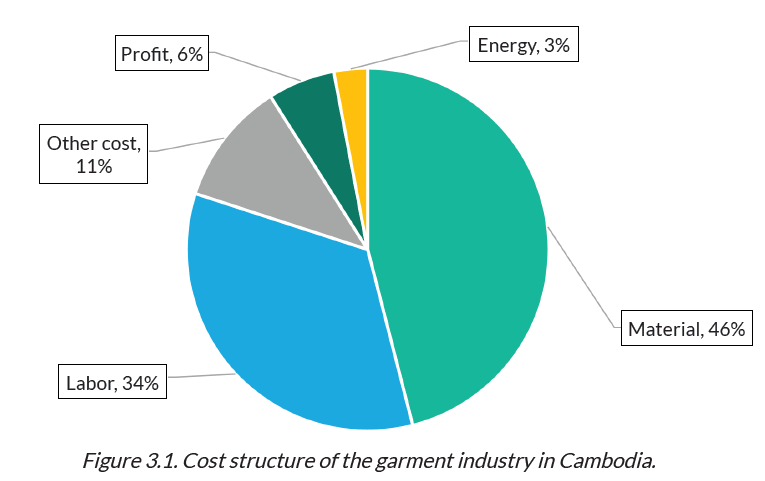 최근 연구에 따르면 지구촌 온실가스 발생의 8%가 봉제산업에서 나온다. 이 보고서에서 조사된 캄보디아의 49개 공장은 연간 77,172 tCO2의 온실가스를 배출하는데 전기에서 55%, 목재에서 42% 발생한다.