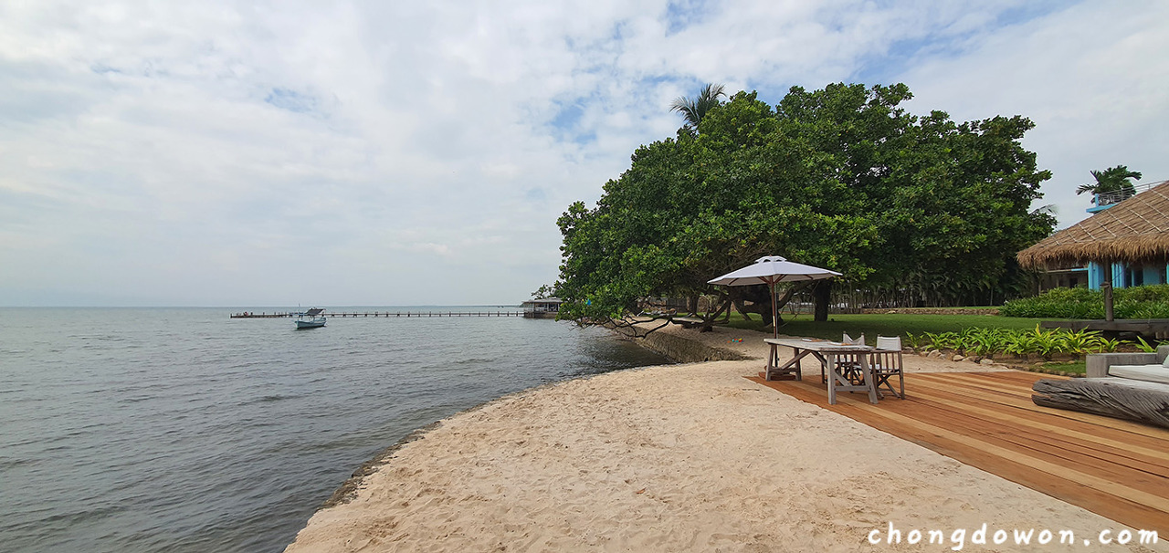 호텔 정원은 해변에 바로 맞닿아 있어 정원을 걷다가 바다로 갈수도 있지만 백사장이 없고 뻘이 많아서 바다수영을 하기에는 좋지 않다. 이와는 달리 낮은 수심 덕에 밤에 고기 잡는 주민들이 꽤 보인다.